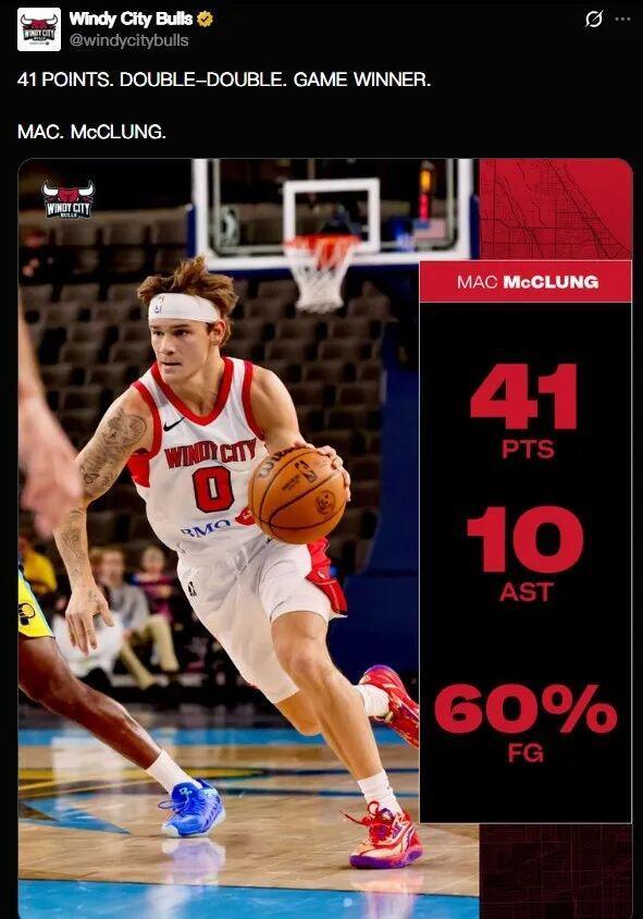 今天风城公牛球员,三届扣篮球 麦克朗,轰下了 41分1篮板10助攻2抢断的超爆炸数据。特别是第四节, 麦克朗独得22分,最后用一记超远3分杀死比赛