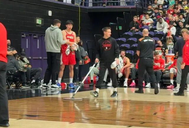 杨瀚森真的赢回主帅信任了,开拓者主帅斯普利特来到了现场观战。